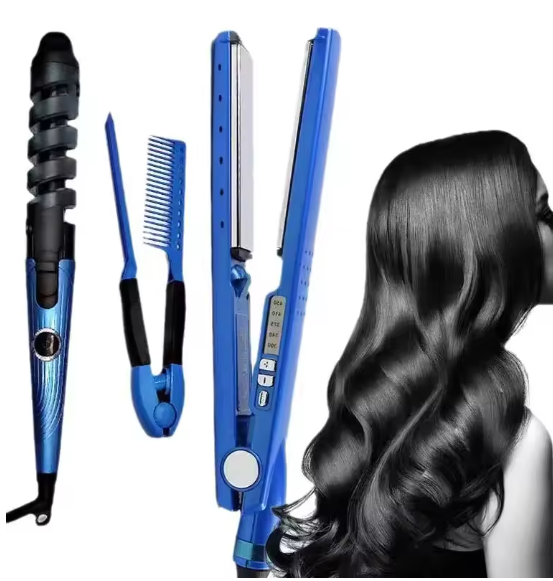 Recibirás una plancha con placas cerámicas, un rizador curl y un peine pinza, cepillo secador